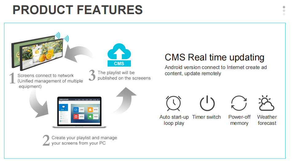 3. Smart Content Management: Features like Plug-and-Play, Split-Screen display, and Remote Control make managing your advertisements easier than ever.