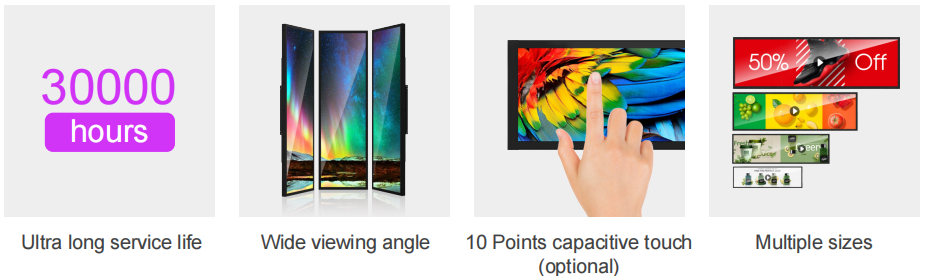 When vertical content needs to be displayed, the bar-type display can be switched to portrait mode to showcase product details or long-form information. Landscape mode, on the other hand, is suitable for displaying wide-format videos, images, or a combination of various types of information. The relatively ample length of the screen allows bar-type displays to show multiple types of content simultaneously on the same screen. Businesses can freely divide the screen area according to their needs to display different content separately.